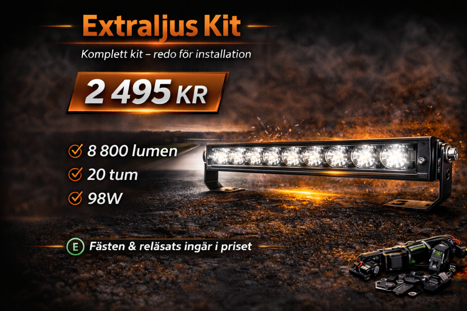 För dig som vill ta det till nästa nivå. Vi skräddarsyr avancerade lösningar med flera extraljus, integrerade ramper, arbetsbelysning, varningsljus och specialanpassad el/CAN-bus. Perfekt för showbyggen, entreprenad eller unika fordon.