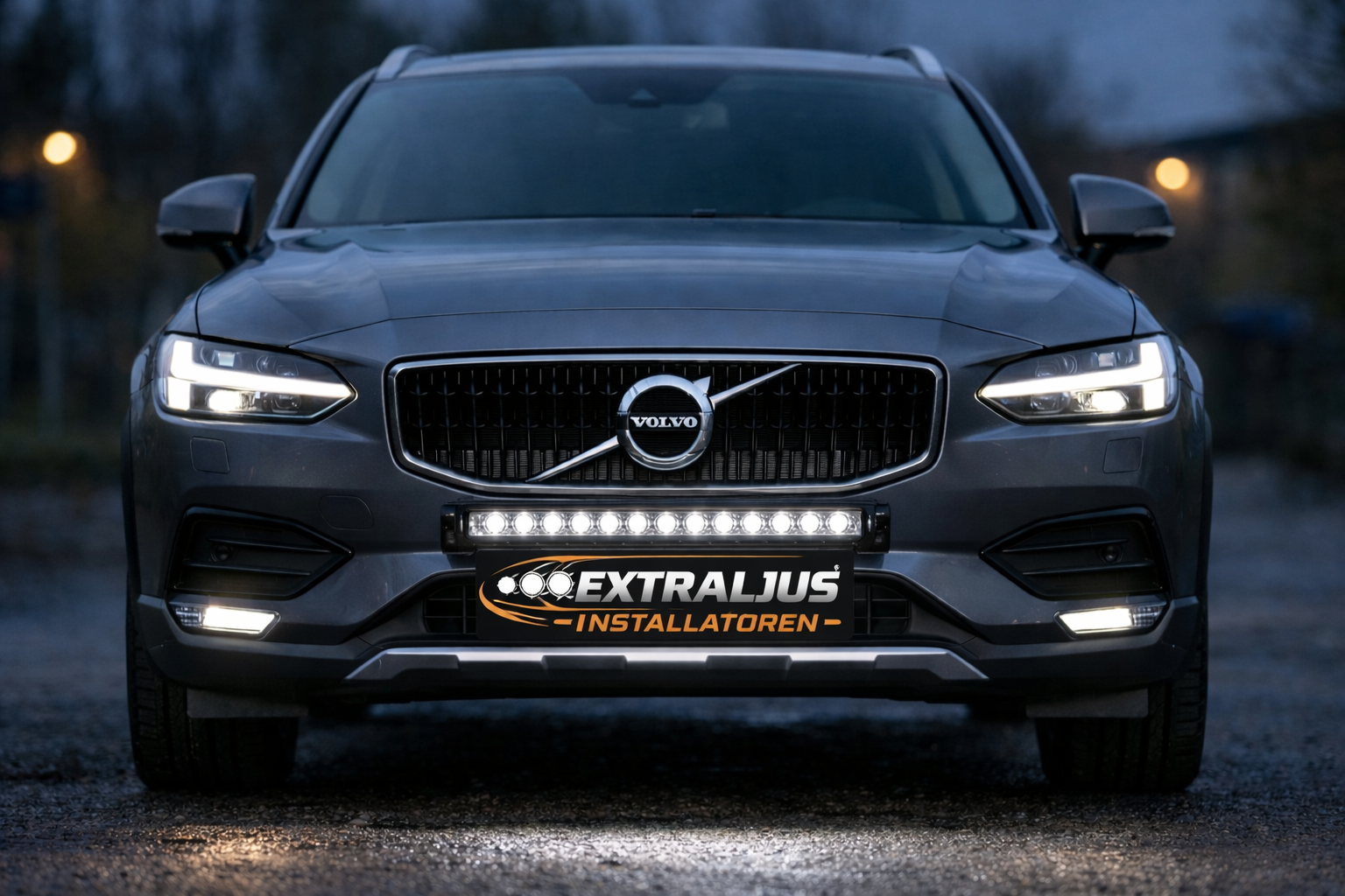 Professionell montering av LED-ramp på utsidan av fordonet med säker inkoppling, relä och korrekt infästning. Vi ser till att installationen blir snygg, stabil och anpassad för din bil.